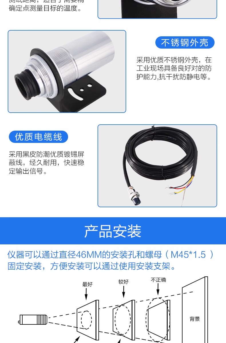 工業(yè)用紅外溫度傳感器非接觸短波探頭高精度高溫金屬紅外線測溫儀