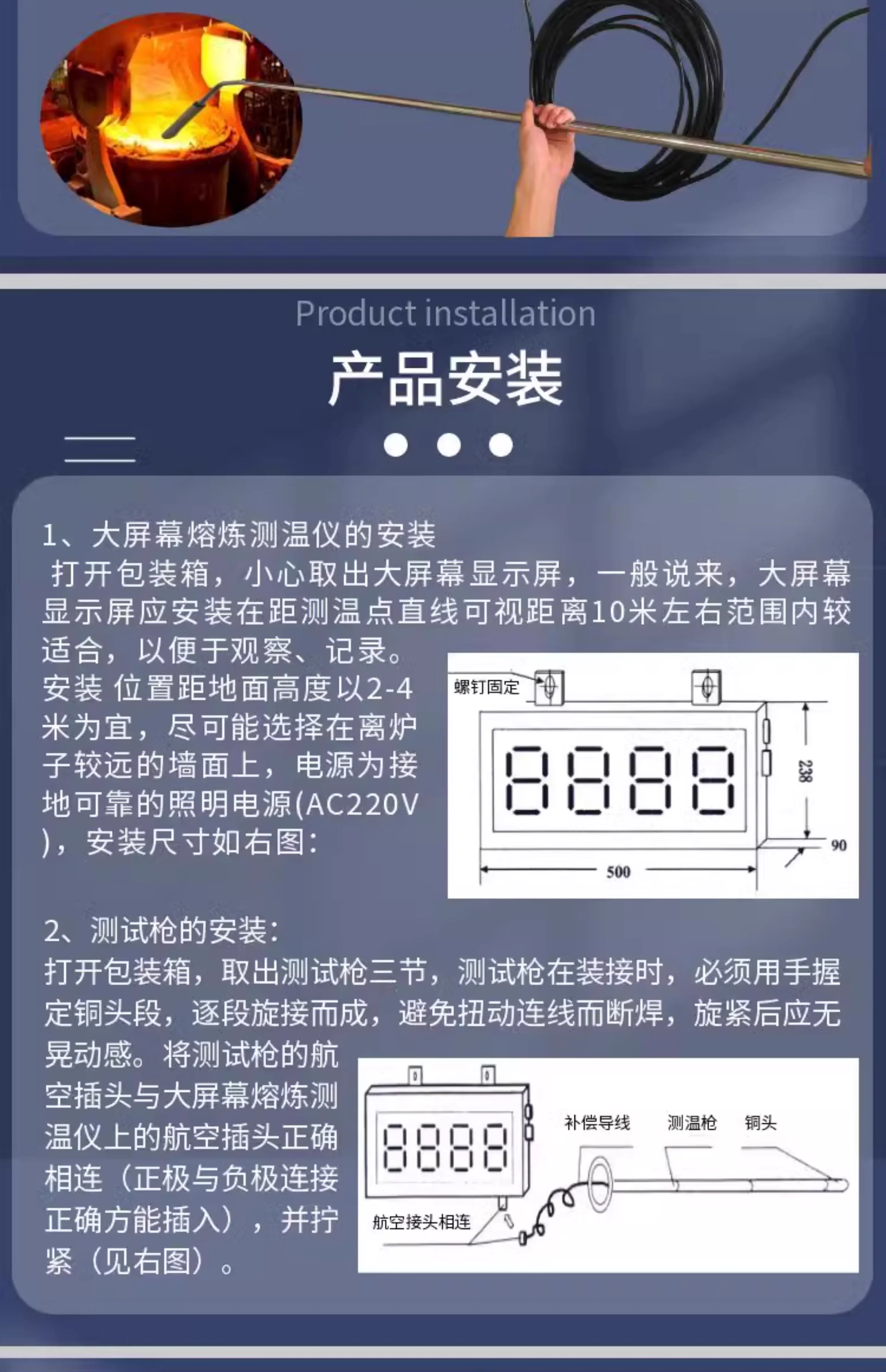 壁掛式大屏幕熔煉測(cè)溫儀 高溫鋼液測(cè)溫儀鑄造冶煉鋼鐵液專用