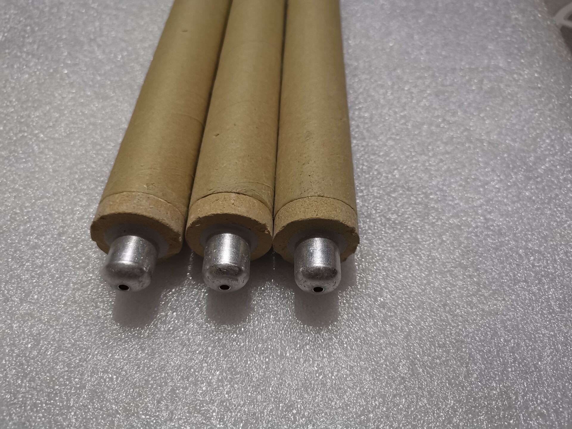 快速測溫?zé)犭娕加糜跍y量鋼水及高溫熔融金屬的溫度,是一次性消耗式熱電偶。它的工作原理是根據(jù)金屬的熱電效應(yīng),利用熱電偶兩端所產(chǎn)生的溫差電熱測量鋼水及高熔融金屬溫度。快速熱電偶主要由測溫偶頭與大紙管構(gòu)成。偶頭主要有正負(fù)偶絲焊接在補(bǔ)償導(dǎo)線上,補(bǔ)償導(dǎo)線穿嵌在支架上,支架外套有小紙管,偶絲以石英支撐和保護(hù)。外部裝有防渣帽,全部零組件集中裝入泥頭中并以耐火填充劑粘合成一整體,而不可拆卸,故為一次性使用。